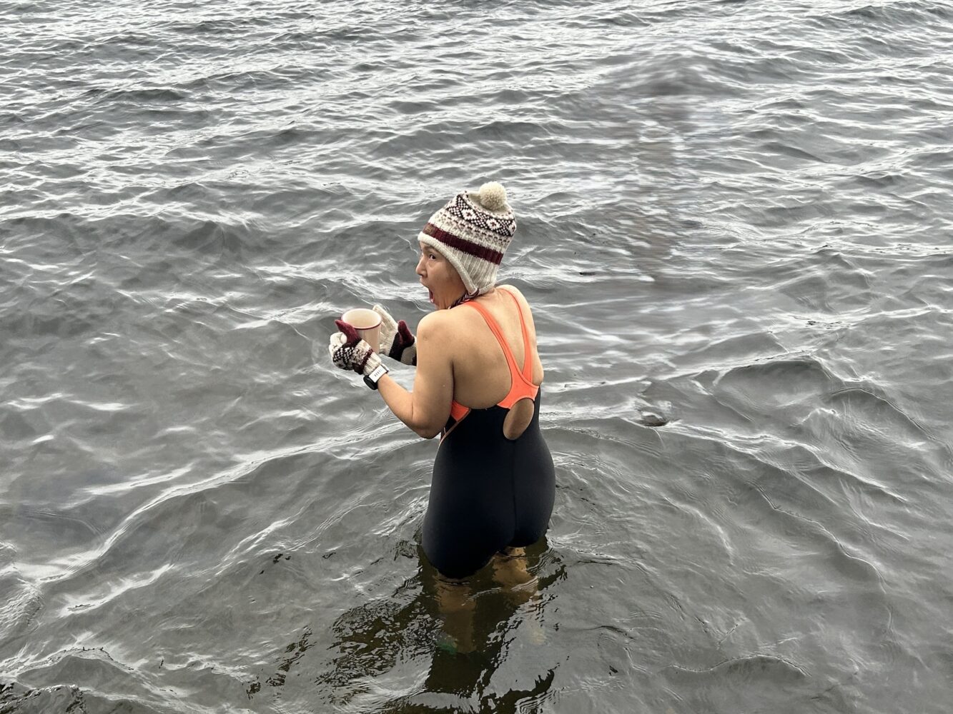 I lasted… about five seconds before surrendering. The water temperature? Apparently 0°C.