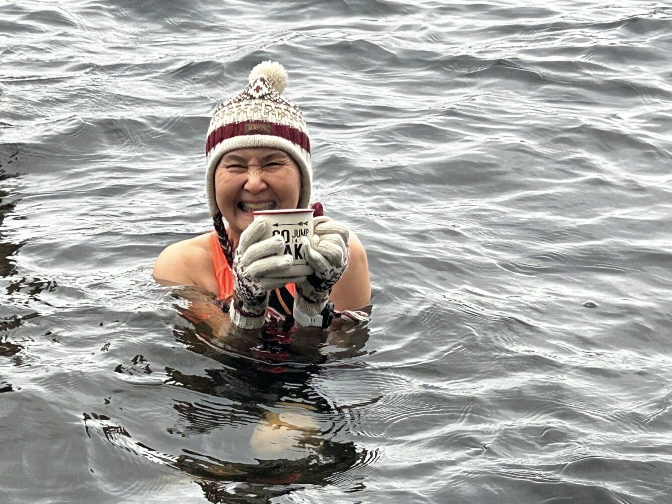 This year, no wetsuit. A true Real Canadian polar swim.